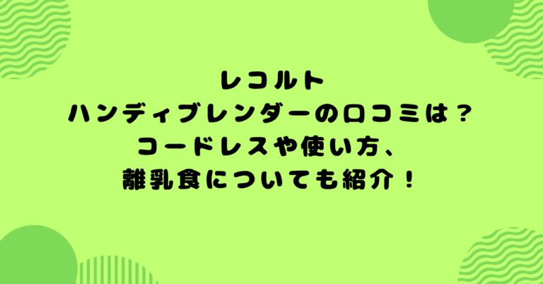 レコルト ハンディブレンダーの口コミは?コードレスや使い方、離乳食についても紹介!